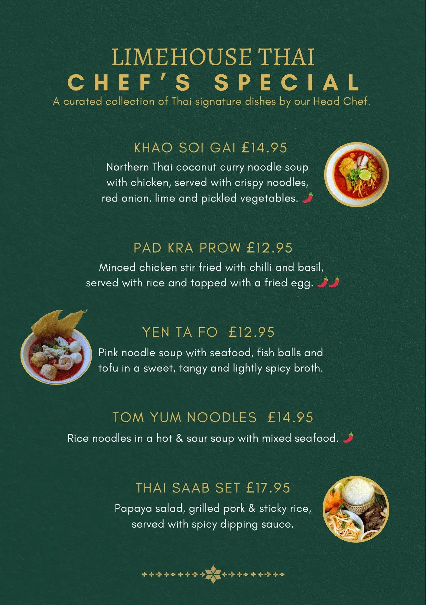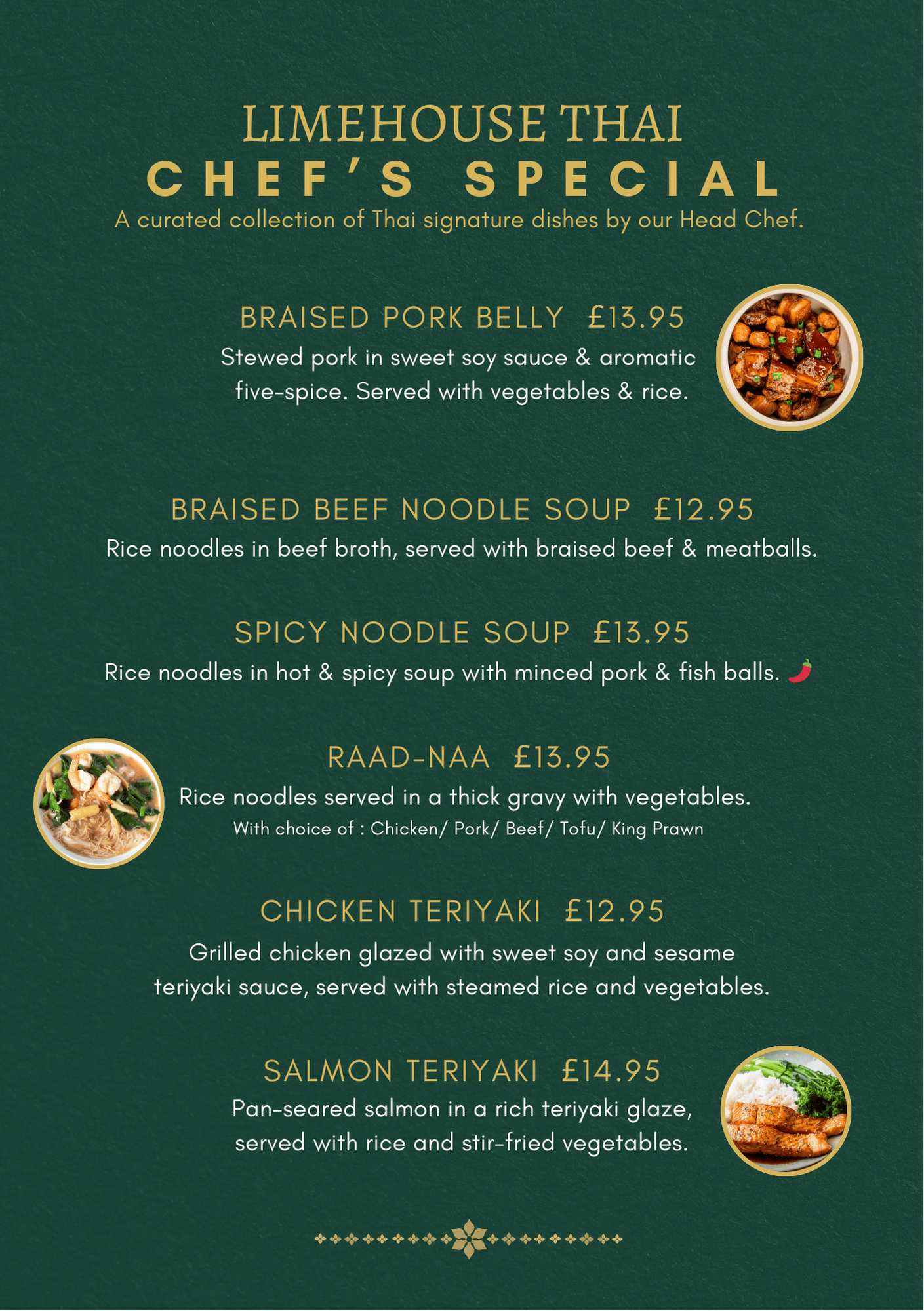 Our Chef’s Special lunch menu celebrates the comforting dishes Thai people love most.